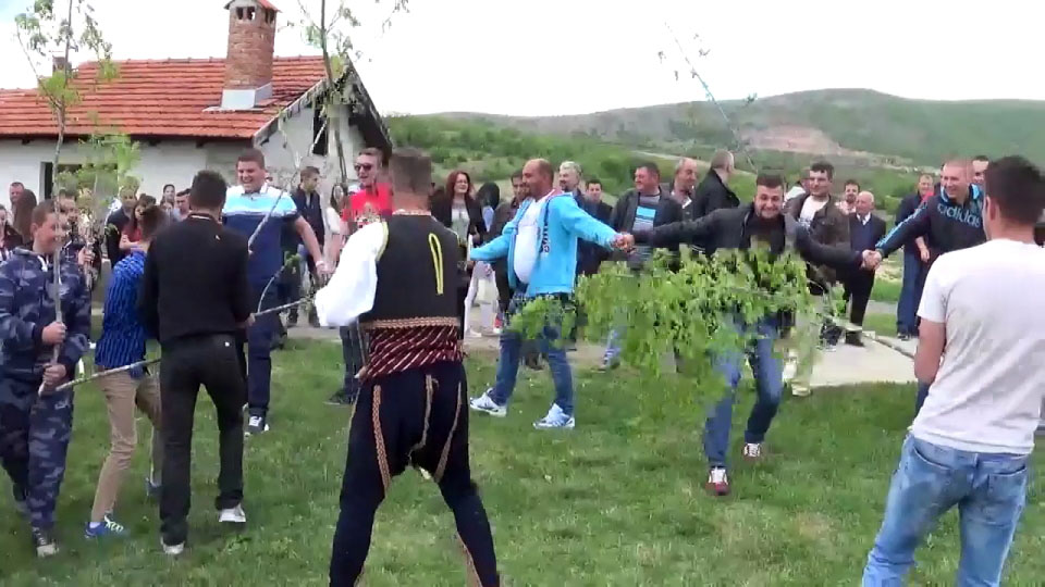 Bela vila (White fairy) is a custom practiced at Velika Hoča on the third day of Easter, as an integral part of a composite complex of customary rituals performed in this town for the occasion of Eastern. It includes two parts – a performance play symbolizing hunting of wild horses and a play of “building the town”. The first part of the ritual presents about a dozen “hunters” who use young leafy branches, about 3 m long, to “catch” about two dozen “wild horses” and bring them to the “market”, i.e. the place where they would be supposedly sold to the “buyers”. In the second part of the play, the young men make a circular formation of two rows of participants, upper and lower, “building the town”. Once the “town is built”, the participants of said formation sing the song Bela vila grad gradila (“White fairy built a town”).